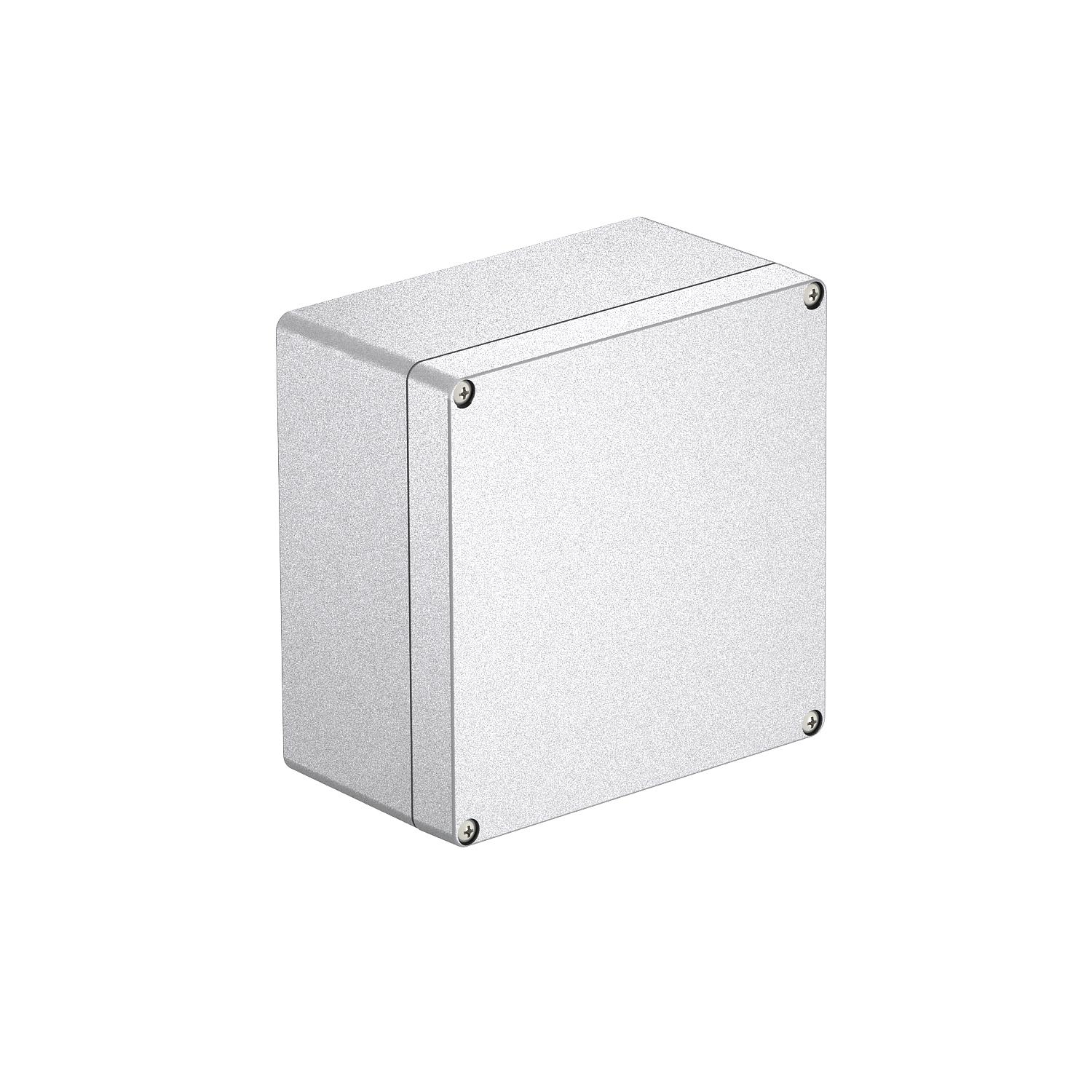 As caixas são fabricadas em alumínio, têm revestimento cromado 3, incluem 2 ou 4 parafusos de terra, a tampa é fechada com parafusos de aço inox.