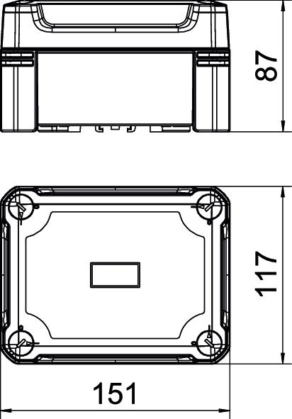 Descrição do produtoCaixa de derivação com calha DIN para conectar cabos e tubos em áreas interiores e exteriores. Forma retangular sem entradas. Adequado para montagem na parede e teto com opção para fixação externa ou montagem através de parafusos nos cantos. Particularmente resistente ao impacto com IK09. Tampa transparente com fecho rápido, pode ser selada a chumbo. Fabricada em materiais resistentes aos raios UV e livres de halogéneo.