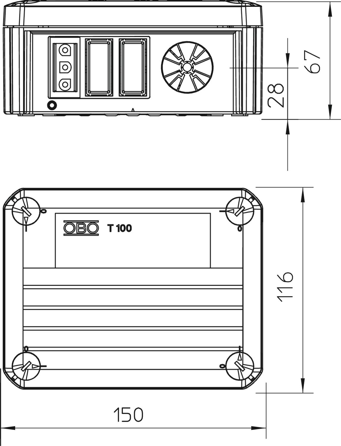Agrupável sim Altura 67 mm Com blindagem não Com tampa sim Comprimento 150 mm Cor cinzento claro; RAL 7035 Dimensão 150x116x67 Dimensões internas 136x102x57 mm Entrada pela parte de trás sim Fixação da tampa aparafusado Forma retangular Funktionsgaranti sem Gama de temperaturas de aplicação máx. 60 °C Gama de temperaturas de aplicação mín. -5 °C Grau de proteção IP20 Largura 116 mm Livre de halogéneos sim Material Polipropileno Montagem Outros Número de entradas 4 para zona Ex com gás sem para zona Ex com poeira sem Para zonas potencialmente explosivas sem Pegada de CO2 (GWP) do berço ao portão 0,6146 kg CO2e / 1 Peça resistência ao fio incandescente conforme a VDE 0471/DIN 695 Parte 2-1, temperatura de ensaio 650 °C Resistente a intempéries não Secção transversal nominal mín. 2,5 mm² Selável sim Tampa não transparente Tampa transparente não Tensão de isolamento do dimensionamento Ui 500 V Tensões nominais 500 V Tipo de entrada Entradas de alívio de tensão para perfuração direta para diâmetros de cabo de 7-21 mm Tipo de versão da caixa Marcação Versão verificada quanto a explosões não - Todos os tipos