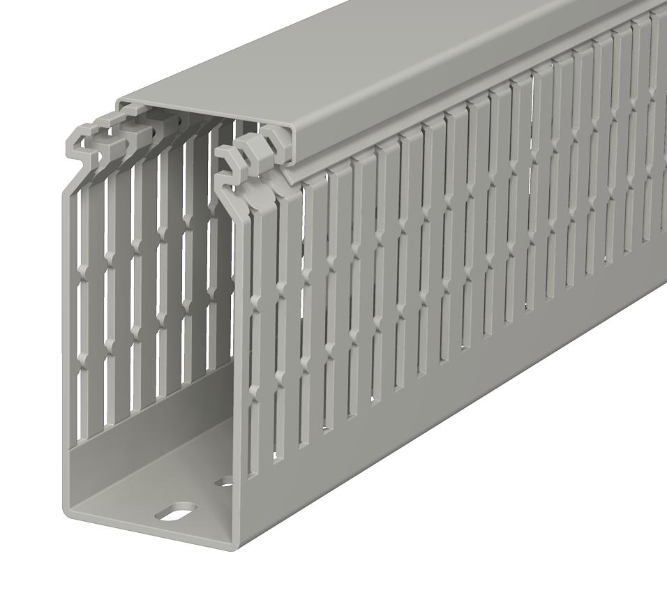 Descrição do produtoCalha de cablagem conforme a norma DIN EN 50085-2-3 inclui tampa e base perfurada para colocação horizontal e vertical de cabos e linhas elétricas no quadro de distribuição. Versão de calha DIN. A quebra das barras pode ocorrer sem ferramentas. A execução no pavimento é possível através de pontos de rutura nominais. As ranhuras laterais impedem a queda dos cabos. Testado de acordo com a DIN EN 50085-2-3. Comprimentos especiais disponíveis mediante pedido.