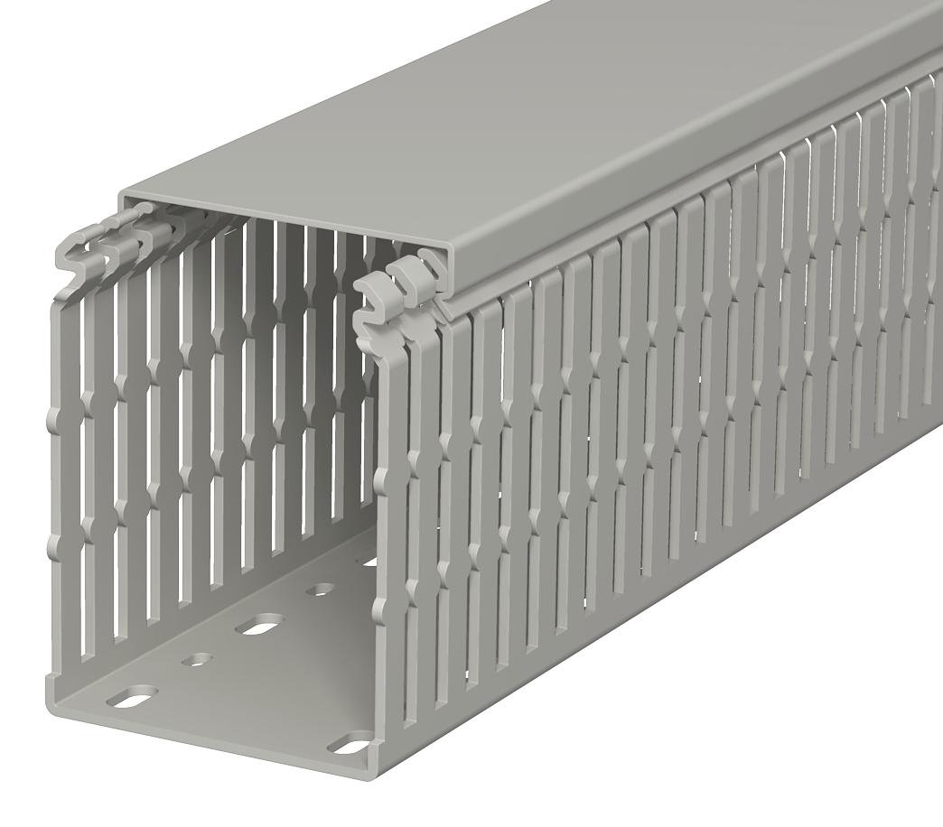 Descrição do produtoCalha de cablagem conforme a norma DIN EN 50085-2-3 inclui tampa e base perfurada para colocação horizontal e vertical de cabos e linhas elétricas no quadro de distribuição. Versão de calha DIN. A quebra das barras pode ocorrer sem ferramentas. A execução no pavimento é possível através de pontos de rutura nominais. As ranhuras laterais impedem a queda dos cabos. Testado de acordo com a DIN EN 50085-2-3. Comprimentos especiais disponíveis mediante pedido.
