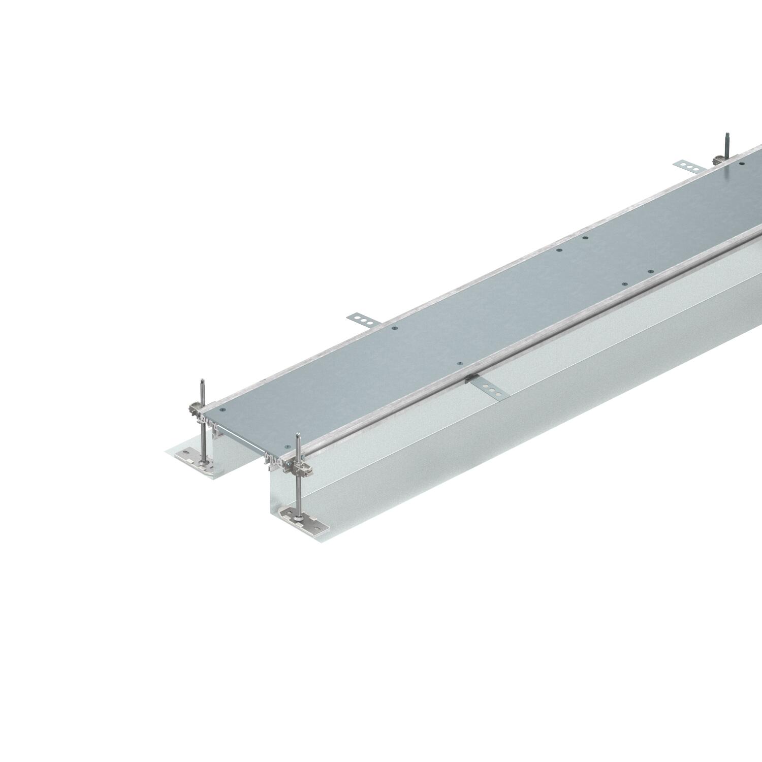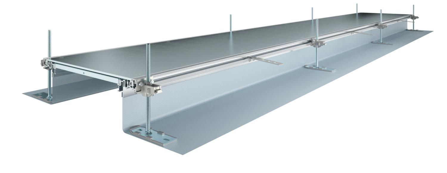 Descrição do produtoCalha pronta para montagem para a condução de cabos, composta por 3 tampas cegas, dois perfis laterais com utilização de painel lateral flexível em tecido metálico, e perfis guia do revestimento de 3 mm. O material fornecido inclui 6 fixações com nivelamento de altura, 6 placas de fixação para betonilha e 3 vedações de impacto da tampa (em calhas com uma largura nominal de 200, 300 e 400) ou 6 suportes niveláveis de impacto da tampa (em calhas com uma largura nominal de 500 e 600). Os niveladores obrigatoriamente necessários (observar a altura de nivelamento) para os suportes de tampa 400, 500 e 600 não estão incluídos no material fornecido e devem ser encomendados separadamente. Calha fornecida com a tampa da calha aparafusada.