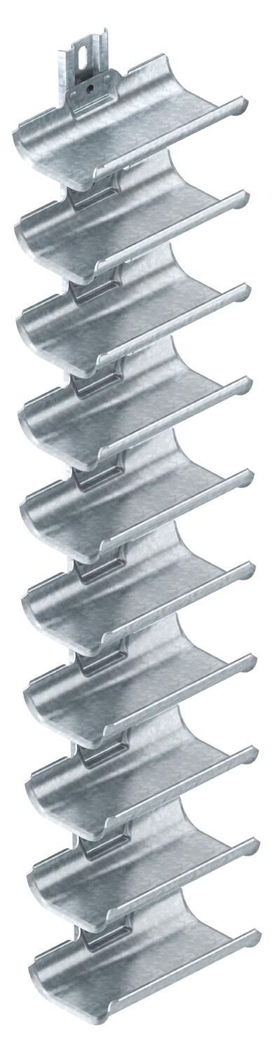 Descrição do produtoPorta-cabos para uma colocação de cabos simples e rápida em áreas de aplicação em que não possam ser montados sistemas de caminhos de cabos convencionais. Os porta-cabos possuem uma grande superfície de contacto e arestas exteriores arredondadas para a proteção dos cabos.