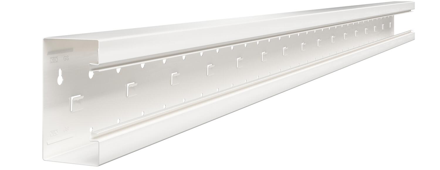 Disponíveis em comprimentos de até 3000 mm, base da calha e tampas, assim como em outras cores (RAL) que podem ser fabricadas por encomenda. As superfícies visíveis das calhas técnicas pintadas são folheadas.