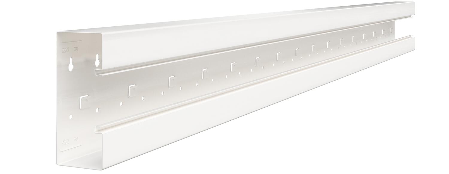 Disponíveis em comprimentos de até 3000 mm, base da calha e tampas, assim como em outras cores (RAL) que podem ser fabricadas por encomenda. As superfícies visíveis das calhas técnicas pintadas são folheadas.
