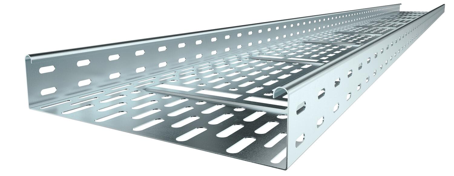 Sistema de caminhos de cabos em chapa com 30% de perfuração, conforme a directiva VdS 2092, para a aplicação sob sistemas de sprinklers.