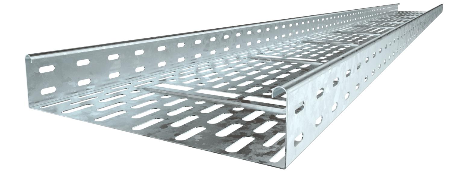 Sistema de caminhos de cabos em chapa com 30% de perfuração, conforme a directiva VdS 2092, para a aplicação sob sistemas de sprinklers.