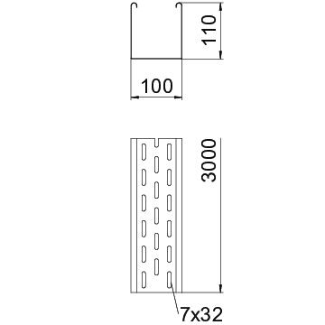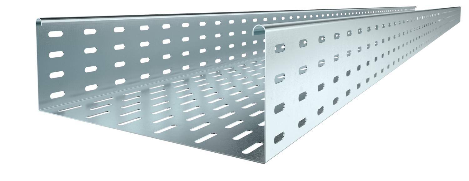 Descrição do produtoMKS 110 = Sistema de caminhos de cabos em chapa para cargas médias com altura lateral de 110 mm.