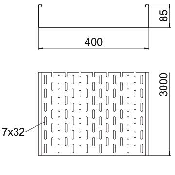 Descrição do produtoMKS 85 = Sistema de caminhos de cabos em chapa para cargas médias com altura lateral de 85 mm.
