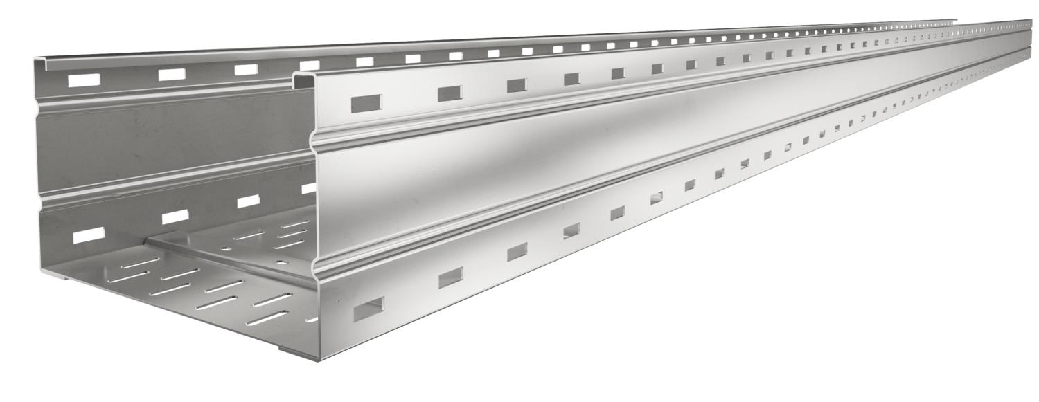Descrição do produtoCaminhos de cabos em chapa para grandes vãos, perfurados, com 160 mm de altura lateral.