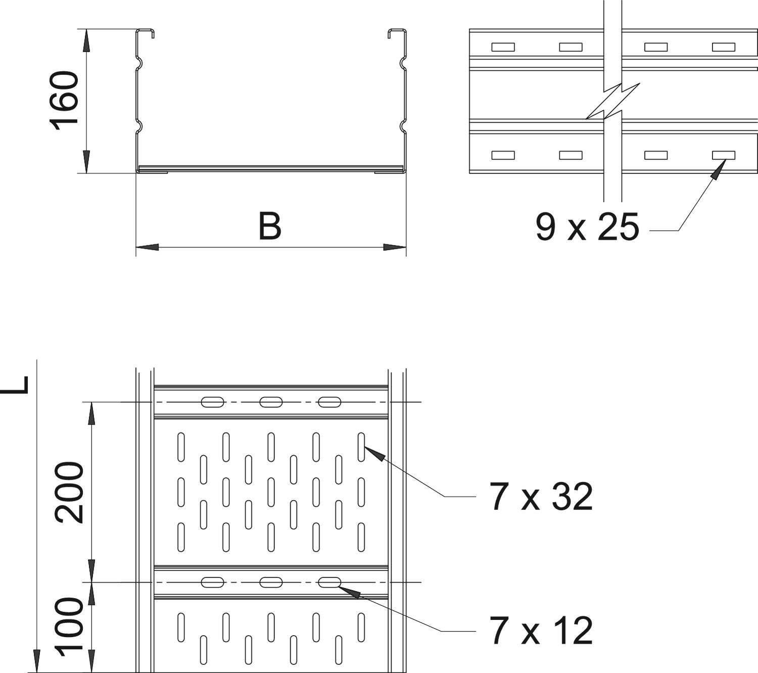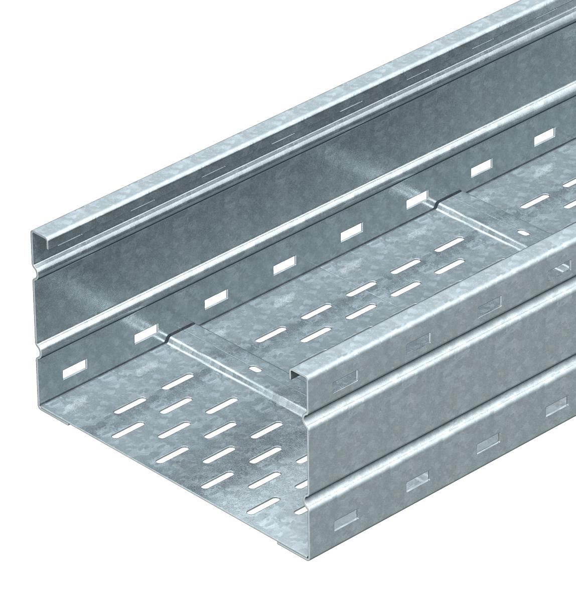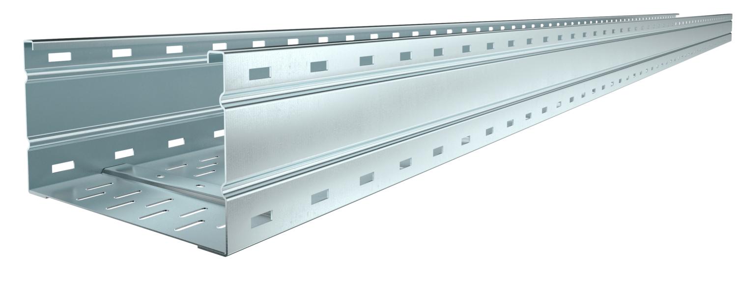 Descrição do produtoCaminhos de cabos em chapa para grandes vãos, perfurados, com 160 mm de altura lateral.