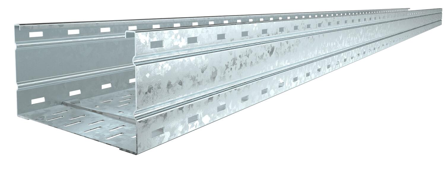 Descrição do produtoCaminhos de cabos em chapa para grandes vãos, perfurados, com 160 mm de altura lateral.