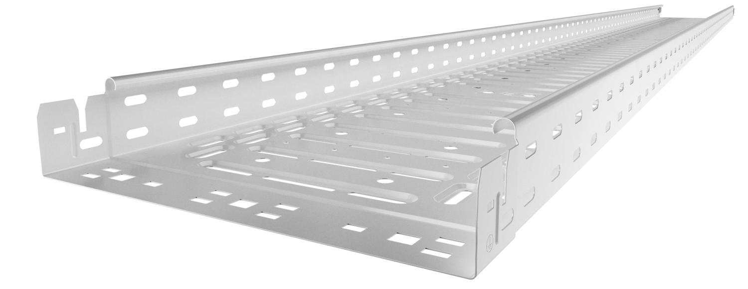 A superfície dos caminhos de cabos em chapa é galvanizada em contínuo e as superfícies visíveis são revestidas a pó de cor branca (RAL 9010).