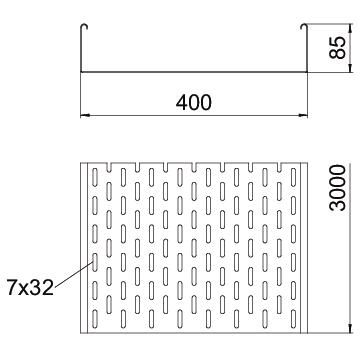 Descrição do produtoSKS 85 = Sistema de caminhos de cabos em chapa para cargas pesadas, com uma altura lateral de 85 mm.
