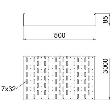 Descrição do produtoSKS 85 = Sistema de caminhos de cabos em chapa para cargas pesadas, com uma altura lateral de 85 mm.