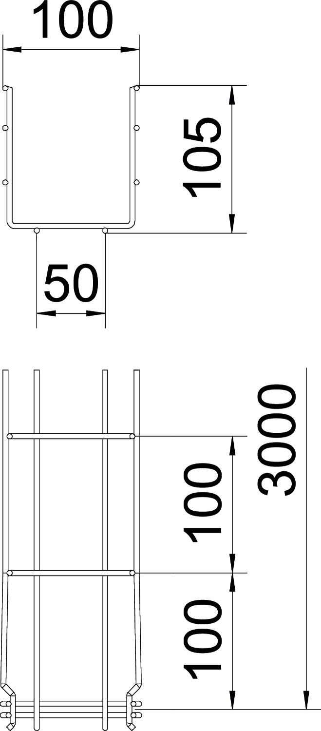 Para caminhos de cabos em varão não são necessários outros componentes de ligação, estes são simplesmente encaixados uns nos outros. A largura de malha é de 50 x 100 mm.