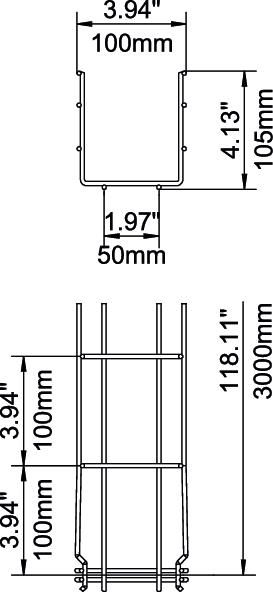 Para caminhos de cabos em varão não são necessários outros componentes de ligação, estes são simplesmente encaixados uns nos outros. A largura de malha é de 50 x 100 mm.