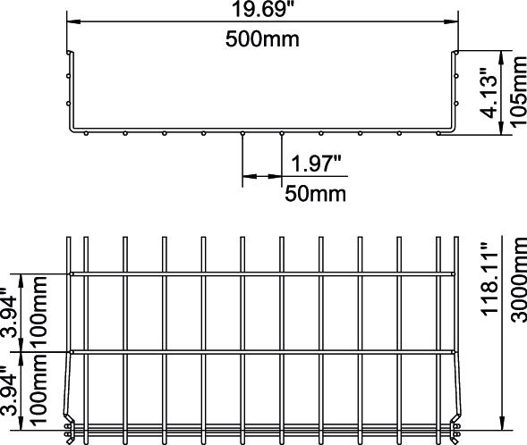 Descrição do produtoCaminho de cabos em varão com união de encaixe rápido com 105 mm de altura lateral.