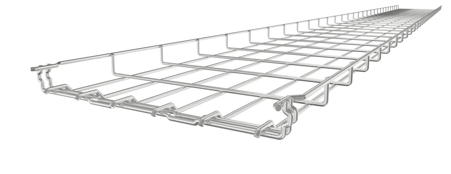 Para o caminho de cabos em varão não são necessários outros componentes de ligação, estes são simplesmente encaixados uns nos outros. A largura de malha é de 50 x 100 mm (exceção GRM 35/50 = 20 x 100 mm).