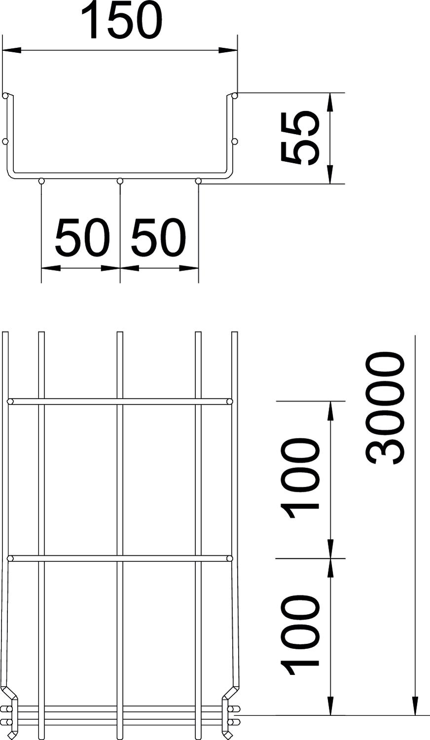 Para caminhos de cabos em varão não são necessários outros componentes de ligação, estes são simplesmente encaixados uns nos outros. A largura de malha é de 50 x 100 mm (excepção GRM 55/50 = 20 x 100 mm).