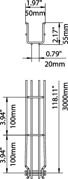 Descrição do produtoCaminho de cabos em varão com união de encaixe rápido com 55 mm de altura lateral.