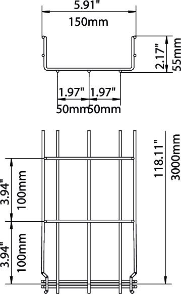 Descrição do produtoCaminho de cabos em varão com união de encaixe rápido com 55 mm de altura lateral.