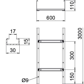 Descrição do produtoCaminho de cabos tipo escada com altura lateral de 110 mm com perfil separador C30 soldado e rebitado para cima. Travessa lateral revirada para reforço e como proteção de arestas. A fixação na consola é efetuada com peças de aperto do tipo LKS 40. A dimensão da ranhura do degrau é de 16,5 mm e a abraçadeira BBS adequada é a do tipo 2056.