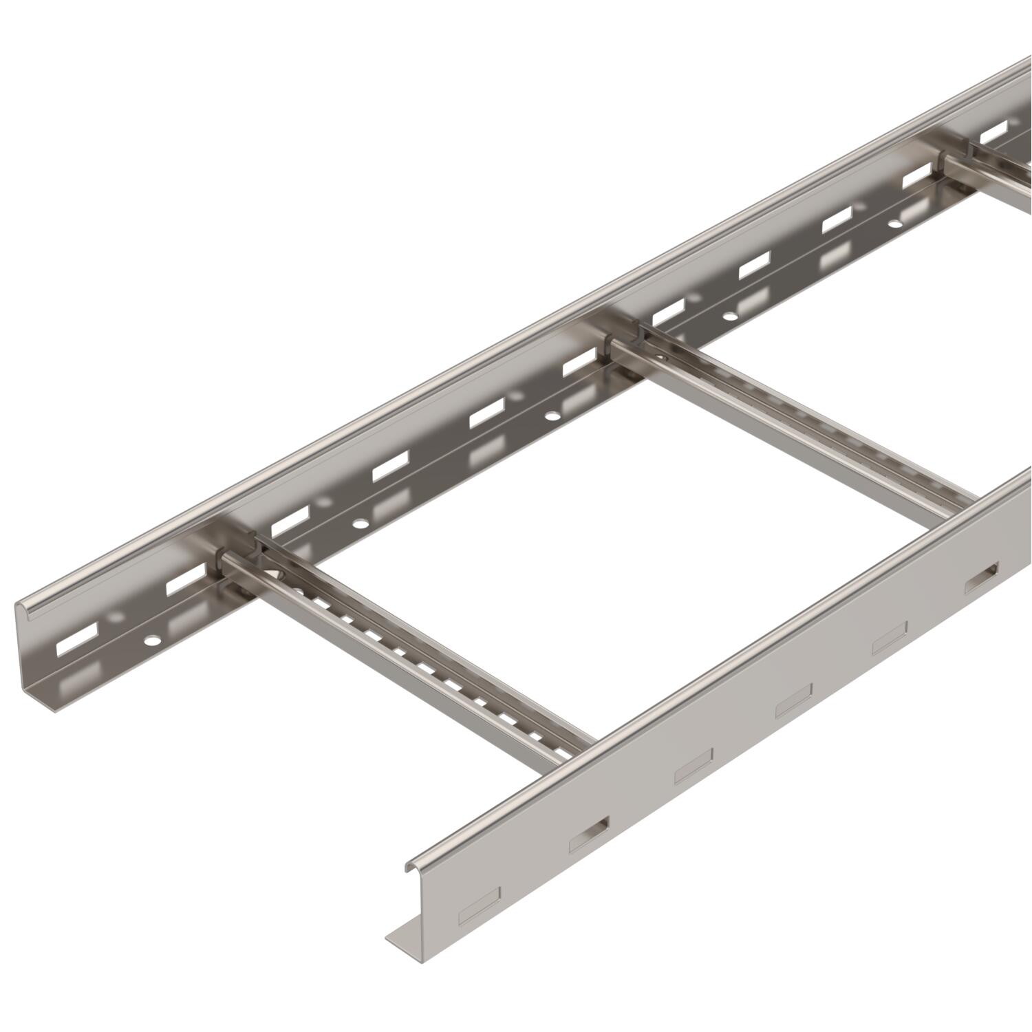 Descrição do produtoCaminho de cabos tipo escada com altura lateral de 60 mm com perfil separador C30 soldado e rebitado para cima. Travessa lateral revirada para reforço e como proteção de arestas. A fixação na consola é efetuada com peças de aperto do tipo LKS 40. A dimensão da ranhura do degrau é de 16,5 mm e a abraçadeira BBS adequada é a do tipo 2056.