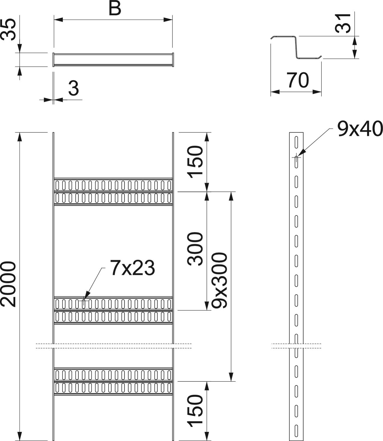 Descrição do produtoCaminhos de cabos navais, pequenas cargas, com aba perfurada de altura lateral de 35 mm, com degraus em Z, soldados e perfurados. Carga verificada de acordo com a IEC em combinação com união do tipo SLV.
