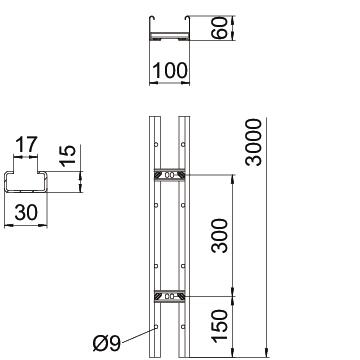 Descrição do produtoCaminho de cabos tipo escada com altura lateral de 60 mm, degraus em perfil C30 soldados e abertos para cima. Travessa lateral revirada para reforço e como proteção de arestas. A fixação na consola é efetuada com peças de aperto do tipo LKS 40. A dimensão da ranhura do degrau é de 16,5 mm e a abraçadeira BBS adequada é a do tipo BS-H....