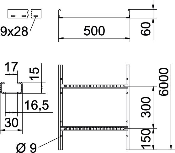 Descrição do produtoCaminho de cabos tipo escada com altura lateral de 60 mm, degraus em perfil C30 soldados e abertos para cima. Travessa lateral revirada para reforço e como proteção de arestas. A fixação na consola é efetuada com peças de aperto do tipo LKS 40. A dimensão da ranhura do degrau é de 16,5 mm e a abraçadeira BBS adequada é a do tipo 2056.