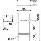 Descrição do produtoCaminho de cabos tipo escada com aba perfurada de 110 mm, degraus do perfil C abertos para cima.