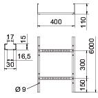 Descrição do produtoCaminho de cabos tipo escada com aba perfurada de 110 mm, degraus do perfil C abertos para cima.