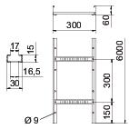 Descrição do produtoCaminho de cabos tipo escada com aba perfurada de 60 mm com degraus em perfil C, rebitados e abertos para cima (versão VS).
