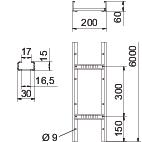 Descrição do produtoCaminho de cabos tipo escada com aba perfurada de 60 mm com degraus em perfil C, rebitados e abertos para cima (versão VS).