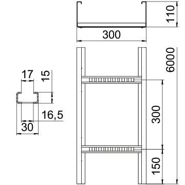 Descrição do produtoCaminhos de cabos tipo escada, para grandes vãos com perfuração lateral com 110 mm de altura lateral. Fixação de cabos e condutas com abraçadeira BSS tipo 2056.