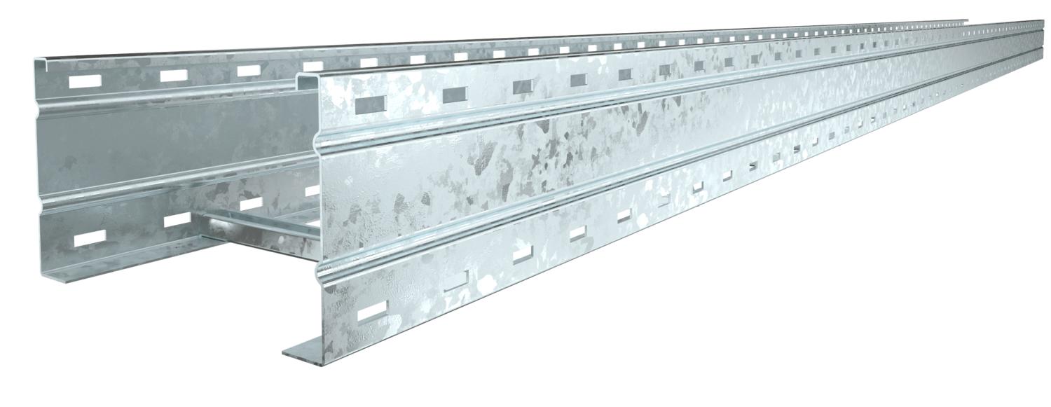 Descrição do produtoCaminhos de cabos tipo escada para grandes vãos com aba perfurada de 160 mm. Fixação de cabos e condutas com abraçadeira BSS tipo 2056.