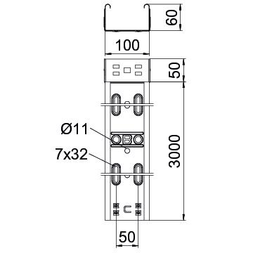 Descrição do produtoCaminho de cabos em chapa com união de encaixe rápido integrada. Superfície com galvanização contínua, revestida a pó em preto profundo (RAL 9005). Perfuração lateral contínua de 7 x 20 mm para a instalação de componentes de ligação e de montagem adicionais. Com orifício de 11 mm na base para a suspensão direta do varão roscado. Comprimento útil de 3.000 mm.
