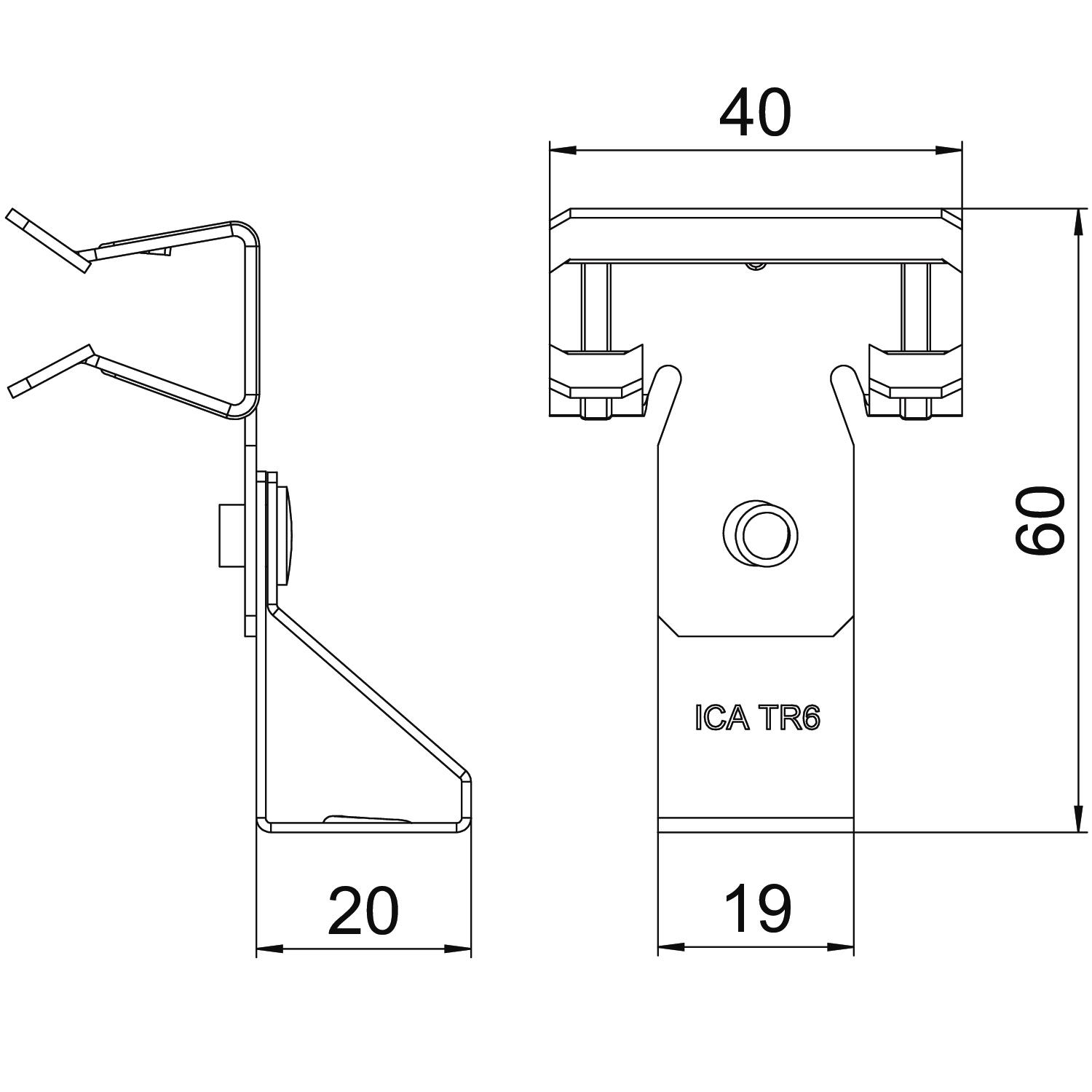 Descrição do produtoClip de suspensão com alojamento para varão roscado para soluções de montagem personalizadas. Fixação a vigas de aço por martelagem.