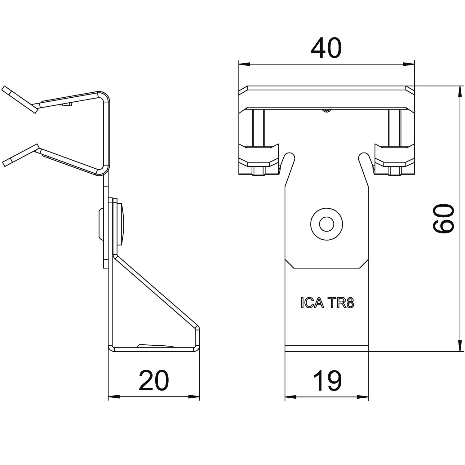 Descrição do produtoClip de suspensão com alojamento para varão roscado para soluções de montagem personalizadas. Fixação a vigas de aço por martelagem.