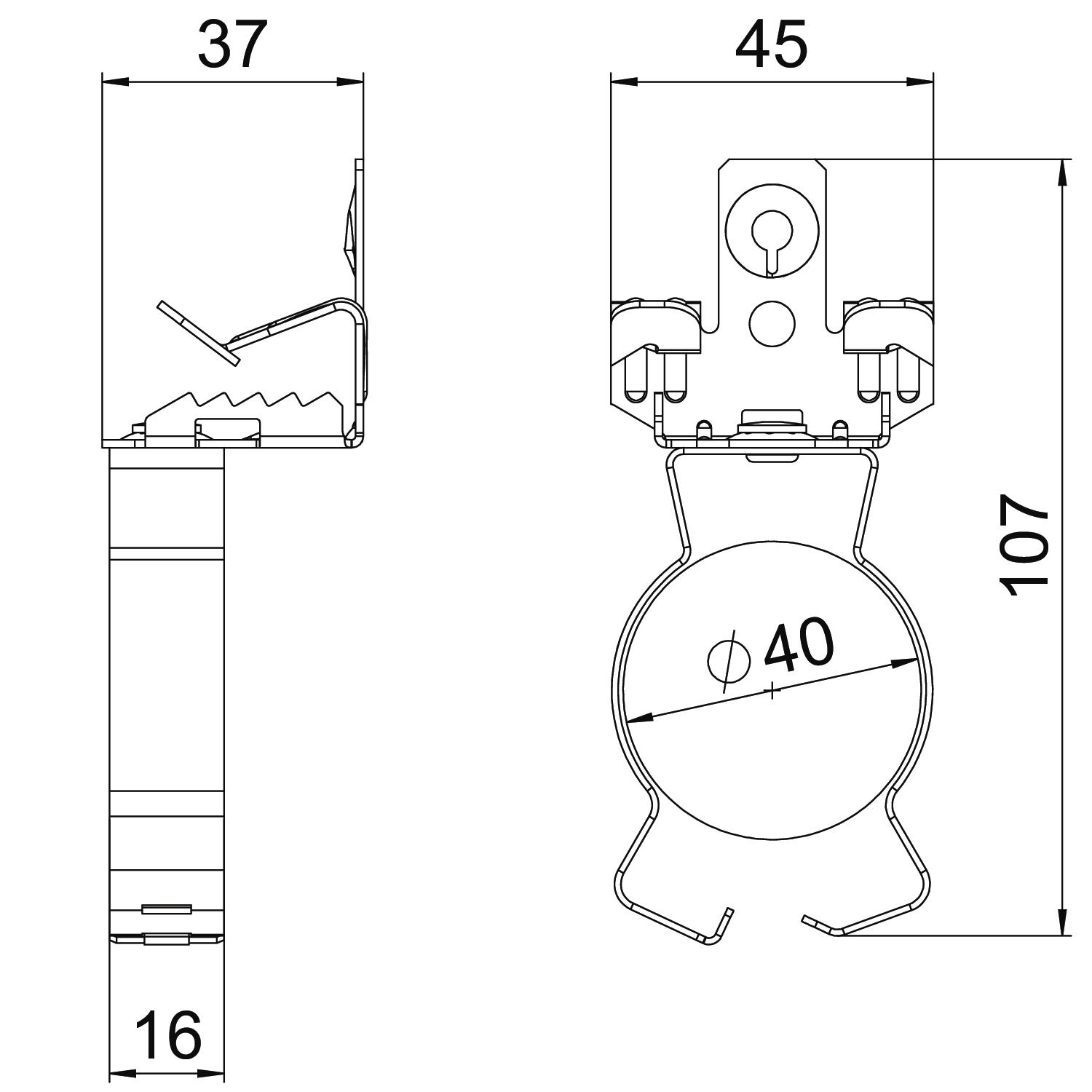 Descrição do produtoClip de suspensão para montar tubos. Encaixe de tubo fechado inferior. Fixação a vigas de aço por martelagem.