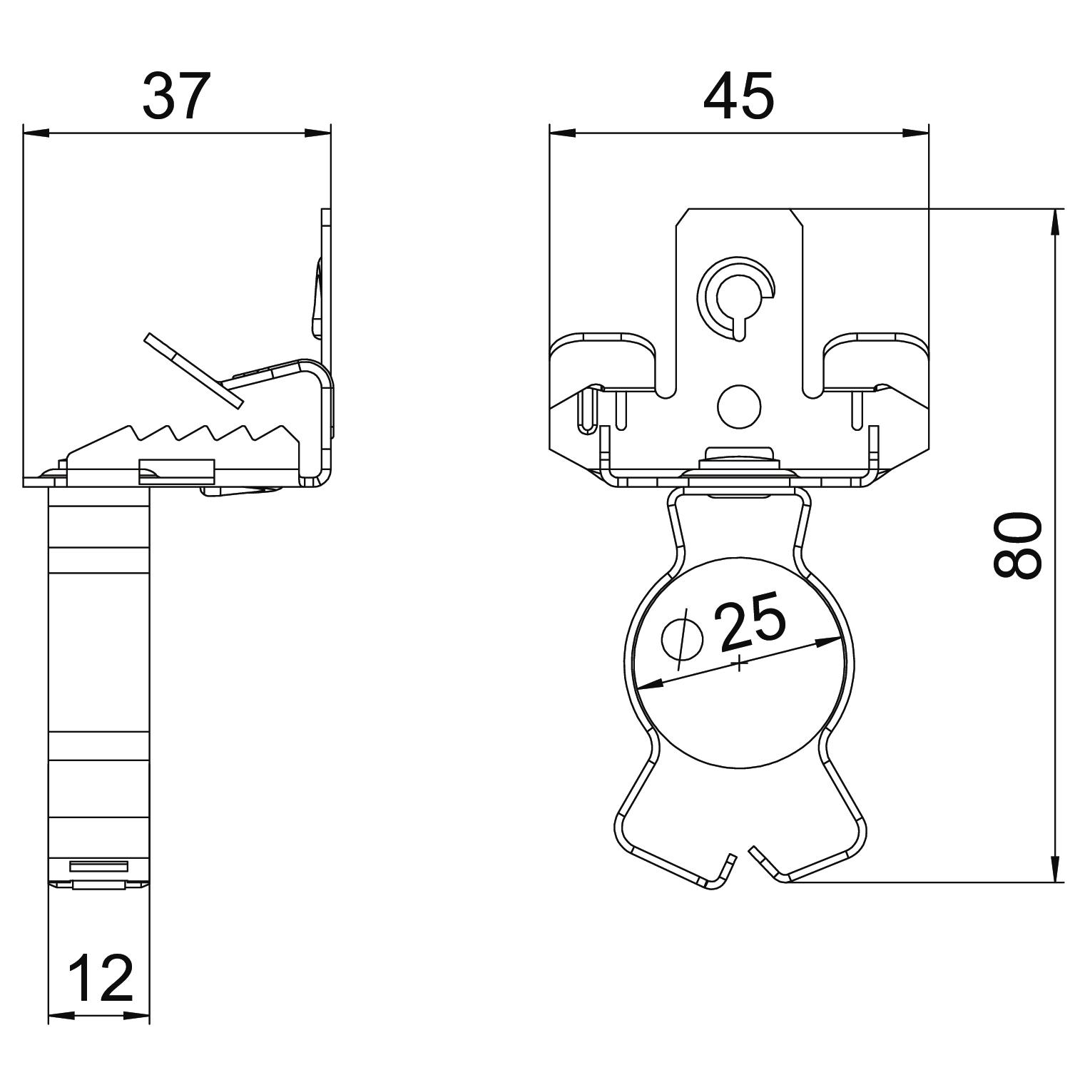 Descrição do produtoClip de suspensão para montar tubos. Encaixe de tubo fechado inferior. Fixação a vigas de aço por martelagem.
