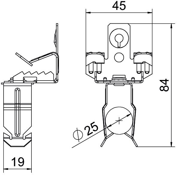 Descrição do produtoClip de suspensão para montar tubos. Encaixe de tubo aberto na parte inferior. Fixação a vigas de aço por martelagem.