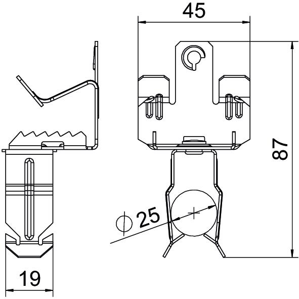 Descrição do produtoClip de suspensão para montar tubos. Encaixe de tubo aberto na parte inferior. Fixação a vigas de aço por martelagem.