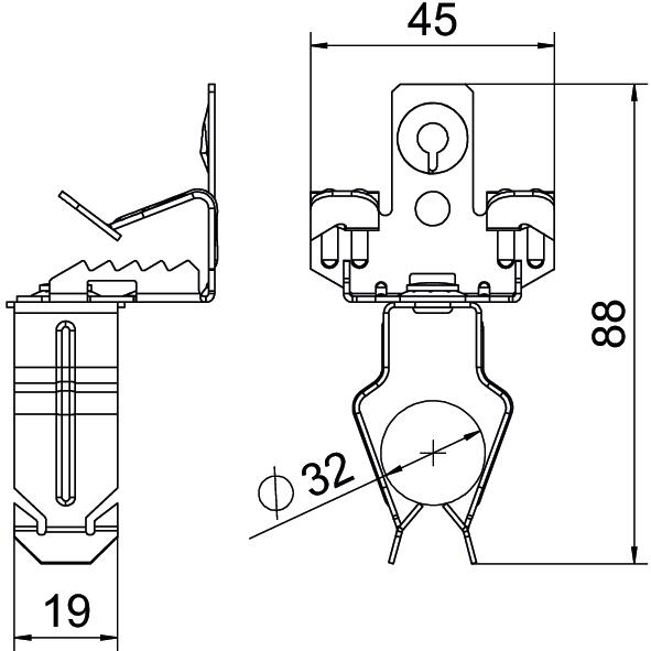 Descrição do produtoClip de suspensão para montar tubos. Encaixe de tubo aberto na parte inferior. Fixação a vigas de aço por martelagem.
