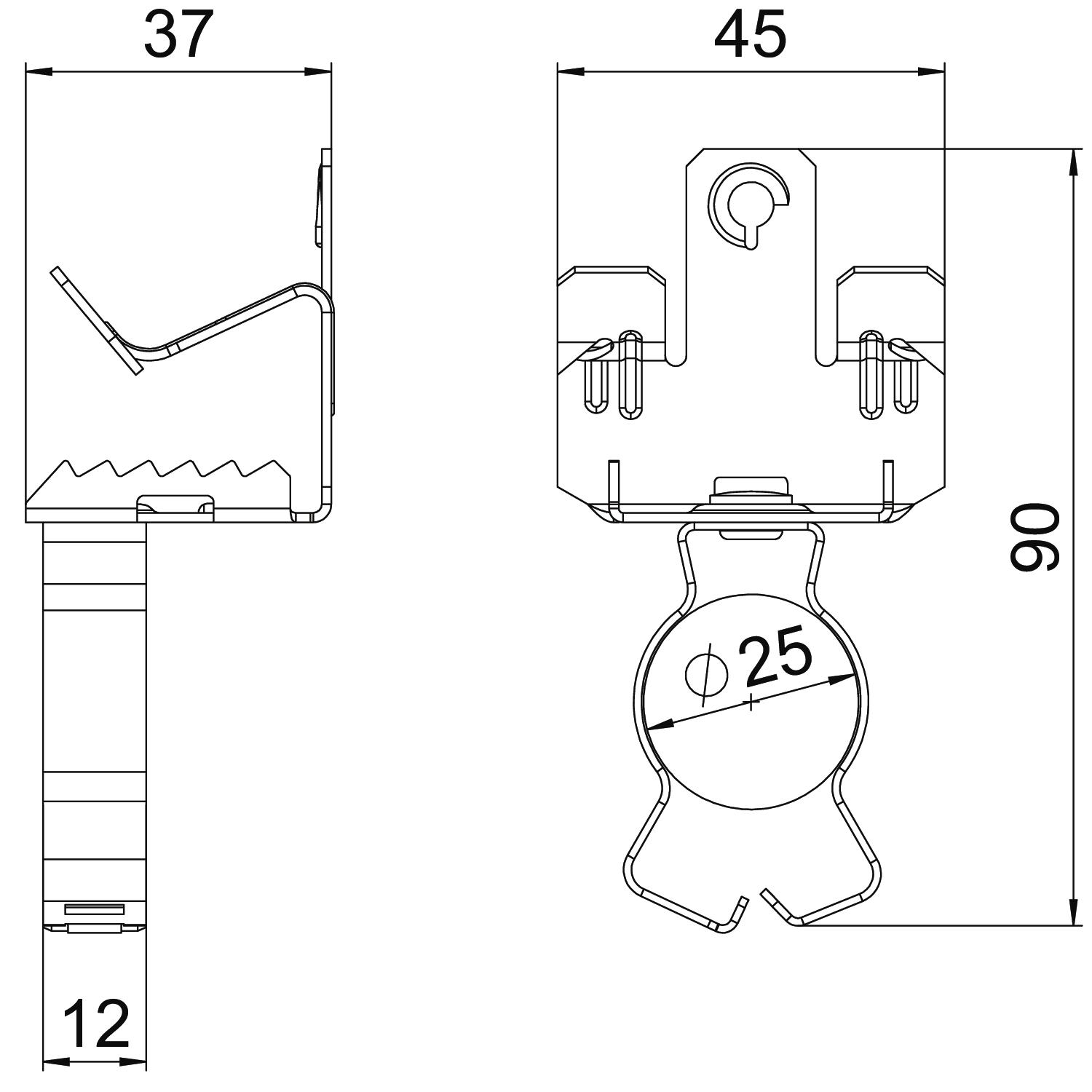 Descrição do produtoClip de suspensão para montar tubos. Encaixe de tubo fechado inferior. Fixação a vigas de aço por martelagem.