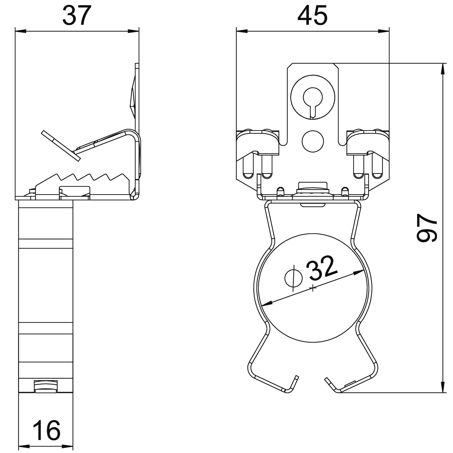 Altura 37 mm Carga de rutura 0,45 kN Comprimento 97 mm Cor zinco Diâmetro do cabo/tubo máx. 32 mm Diâmetro do cabo/tubo mín. 30 mm Dimensão 7-13mm Dobradiça não Dobradiça ajustável não Espessura do flange F máx. 13 mm Espessura do flange F mín. 7 mm Largura 45 mm Material Aço Medida L 97 mm Superfície Lamela de zinco Tipo de fixação apertar Tipo de ligação do componente Cabo/Tubo - Todos os tipos