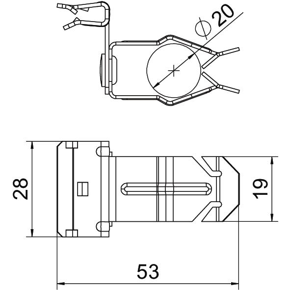 Altura 31 mm Carga de rutura 0,11 kN Comprimento 53 mm Cor zinco Diâmetro do cabo/tubo máx. 22 mm Diâmetro do cabo/tubo mín. 18 mm Dimensão 1,5-4mm Dimension W 28 mm Dobradiça não Dobradiça ajustável não Espessura do flange F máx. 4 mm Espessura do flange F mín. 1,5 mm Largura 28 mm Material Aço Medida L 53 mm Superfície Lamela de zinco Tipo de fixação apertar Tipo de ligação do componente Cabo/Tubo - Todos os tipos