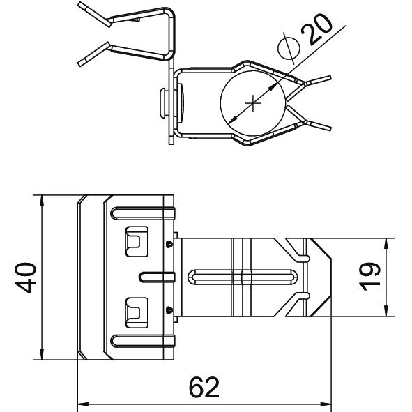 Altura 35 mm Carga de rutura 0,11 kN Comprimento 62 mm Cor zinco Diâmetro do cabo/tubo máx. 22 mm Diâmetro do cabo/tubo mín. 18 mm Dimensão 4-10mm Dimension W 40 mm Dobradiça não Dobradiça ajustável não Espessura do flange F máx. 10 mm Espessura do flange F mín. 4 mm Largura 40 mm Material Aço Medida L 62 mm Superfície Lamela de zinco Tipo de fixação apertar Tipo de ligação do componente Cabo/Tubo - Todos os tipos