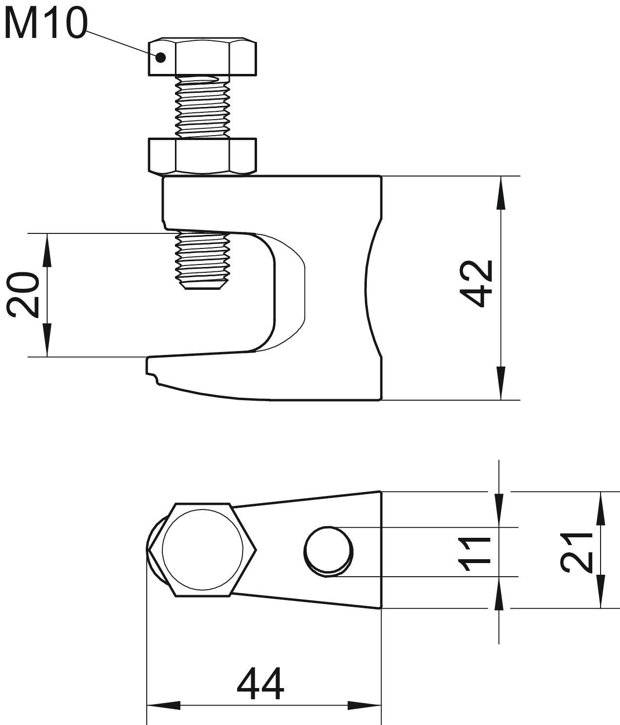 Altura 42 mm Carga de rutura 2,5 kN Comprimento 44 mm Dimensão 0-19mm Dobradiça não Dobradiça ajustável não Espessura do flange F máx. 20 mm Furo de fixação 11 mm Largura 21 mm Material Ferro maleável Máx. Binário de aperto 18 Nm Medida B 21 mm Medida D 11 mm Medida F 20 mm Medida G (mm) M10 Medida H 42 mm Medida L 44 mm Rosca M10 Rosca métrica 10 Tipo de fixação aparafusar Tipo de ligação do componente Furo - Todos os tipos